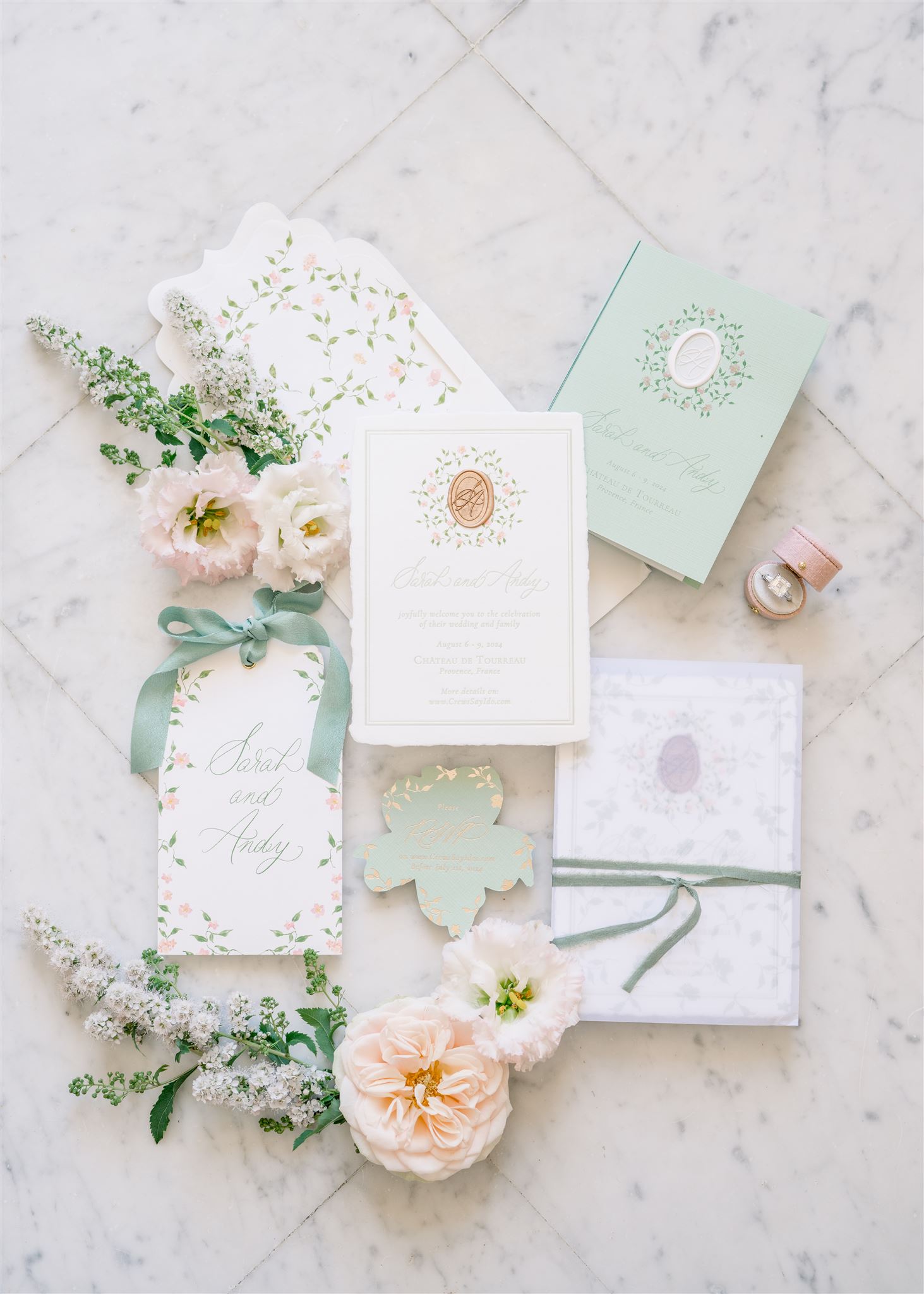 “Hi Delphine, It was the most wonderful surprise when we arrived in Paris tonight to see the beautiful wedding invitations at Stephane’s home. They are even more perfect than I could have ever imagined. I am constantly admiring them and cannot wait to send this to our guests ! Thank you so much for everything, you made this vision a reality and your taste + amazing eye for design is such a gift. I was also so pleased to see your kind note 🙂 I am the happiest bride to be to working with you for the rest of the stationery!”